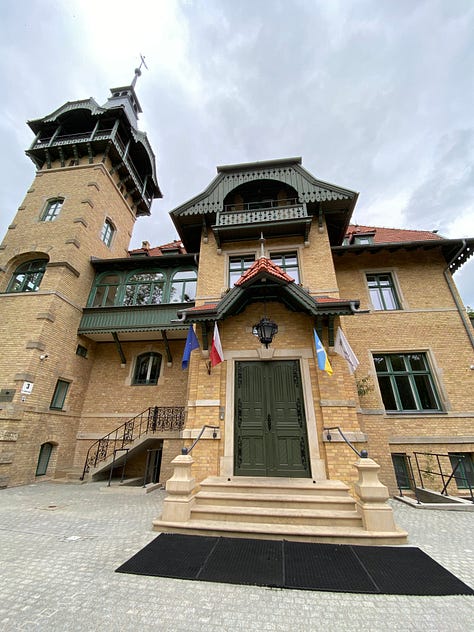 Along the way, we came across a building with historical significance. If I remember correctly, it once housed German Gestapo and Soviet police during their respective occupations. Nowadays, however, it was used as an observation tower and art hub. I always appreciate learning about history, so I enjoyed the short detour.