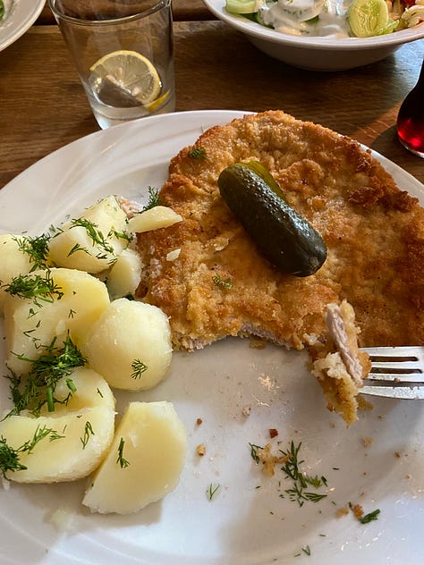 We then sat at a table and ordered. This time, I chose a breaded pork chop and boiled potatoes. As we waited for our food to arrive, we mostly talked about John’s travels and how he hiked across northern Spain. It was quite an impressive feat and made for interesting conversation.